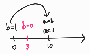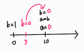 #10 a = b ; 이며 아래 사진에서 왼쪽과 같은 상황입니다. b 값이 중간에 변하면 바로 적용됩니다.